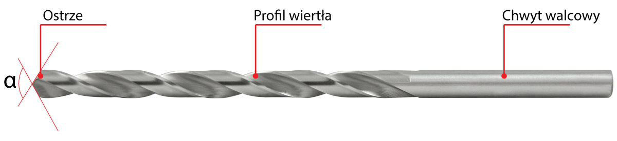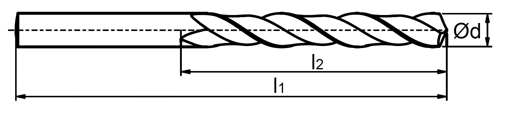 Wymiary wierteł długich NWKb DIN-340 prawoskrętnych z chwytem walcowym